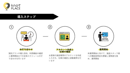 knotPLACEの導入は簡単な3ステップです。 ご興味のある方は、ぜひお気軽にお問い合わせください。