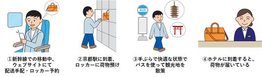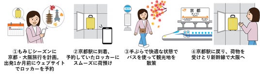 東海旅客鉄道株式会社(以下「JR東海」という)及び株式会社JR東日本スマートロジスティクスは、公民連携プラットフォーム「KYOTO CITY OPEN LABO」を活用し、手ぶら観光の推進に向けた取組の一環として、観光客の利便性・快適性の向上や市バス等の公共交通機関の混雑緩和を目的に、京都駅で「初」となる予約・キャッシュレス・多言語対応可能な多機能ロッカーを設置します。