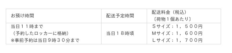 当日11時までに預けることで、京都市内の提携宿泊ホテルへの当日配送が可能