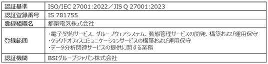 都築電気株式会社(代表取締役社長:吉井 一典、本社:東京都港区、以下当社)は、情報セキュリティマネジメントシステム(ISMS)の認証を更新しました。今回の更新では、クラウド動態管理・配送管理サービス「TCloud for SCM」と、クラウドコミュニケーションサービス「TCloud for Voice」において新規に認証を取得しました。