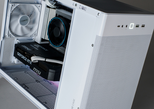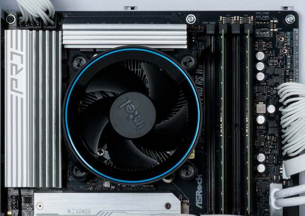 しかも、Core Ultra 7 265FのTDPは65Wと低めで、発熱量もさほど多くない。そのため、ZEFT Z55IGではその冷却にCPUと同梱されている、いわゆるリテールクーラーを採用している。リテールクーラーはさほど背の高さがないため、コストを抑えつつ内部空間も広めに確保できるというわけだ。