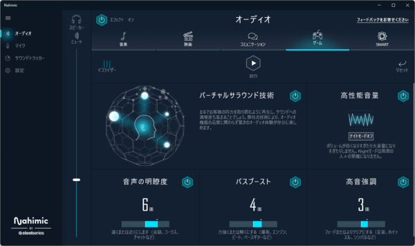 また、サウンドユーティリティとーとして「Nahimic Audio」が用意されており、高品質なサウンド環境を享受できる。