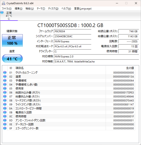 なお、試用機ではSSDにはCrucialの「T500シリーズ」が採用されていた。PCIe 4.0に対応したモデルだ。