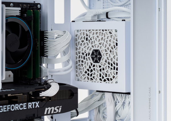 その電源ユニットにはSilverstoneの「DA850R ホワイト」を採用。定格出力850Wで、80 PLUS Gold認証を取得したモデルで、Core Ultra 7 265FとRTX 5070という構成では、十分なスペックといっていい。