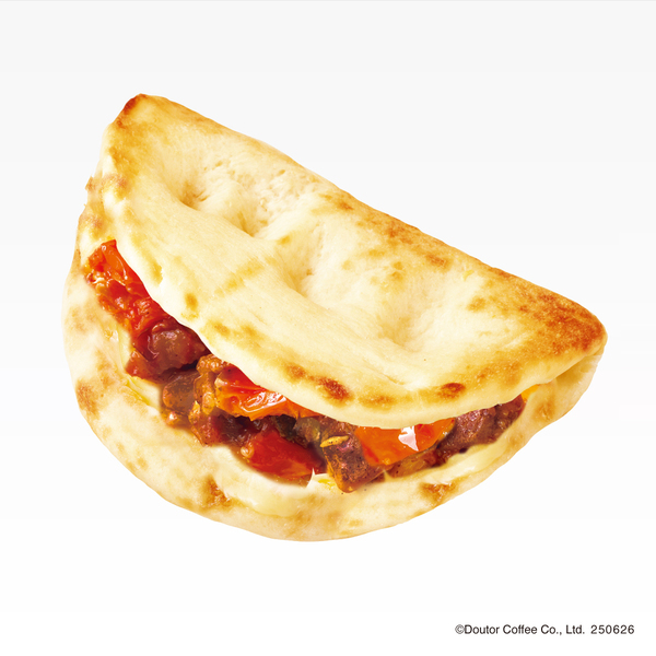 複数のスパイスとココナッツミルクパウダーを加えたカレーソースとタンドリー風チキンを包んだホットサンド。セミドライトマトの酸味がアクセントとなり、最後まで飽きずに食べられるという仕上がりです。