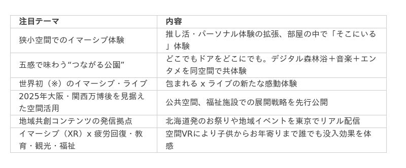 - 当日取材・撮影可能なトピック:インタビュー可能対象者:フォレストデジタルCEO 辻木勇二、浦幌町町長 井上亨 様、撮影可能範囲:二つのイマーシブ空間 uralaa yojo-hanとuralaa park(コンテンツに制限がある場合は当日お伝えします)