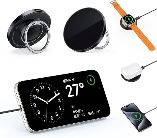 また、MagSafe非対応のiPhoneやAndroidスマートフォン向けに、磁力強化リングも付属。より多くの端末で磁気固定&快適なワイヤレス充電体験を提供します。