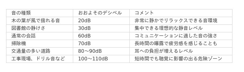 だからこそ、**デシベルという“音のモノサシ”**を知り、自分にとっての快適な音環境を意識することが重要です。