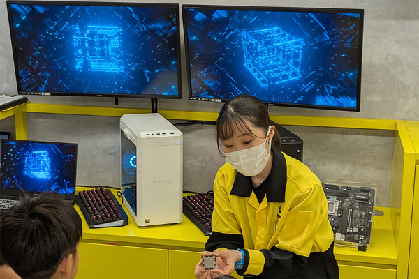 組み立て工程は、パーツのピッキングした後に、あらかじめ用意されたケースにそのパーツを組み込み、最終的には動作チェック。CPUやメモリーなどは実際のパーツを使っており、臨場感はバッチリだ。マウスコンピューターのイメージカラーに合わせた黄色と黒のユニフォームの着用も含めて、思い出となるだろう。