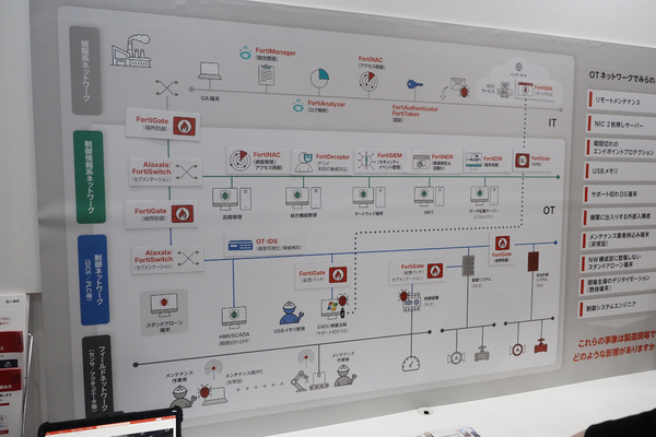 今回のフォーティネットブースでは、「OTセキュリティ」のテーマにも大きなスペースを割いている。