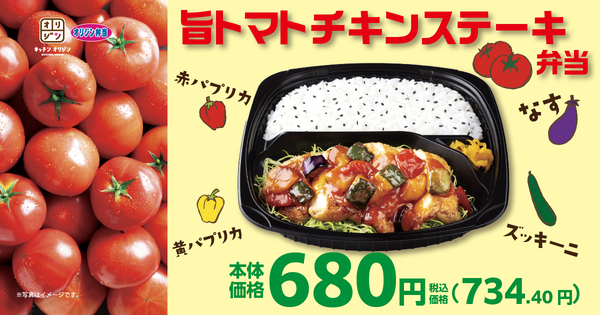 キッチンオリジン、オリジン弁当は「旨トマトチキンステーキ弁当」(734円)を6月12日10時より販売開始した。