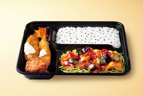 また、白身フライ・海老フライ・唐揚げの入った「Dx旨トマトチキンステーキ弁当」(993円)も同時に販売する。