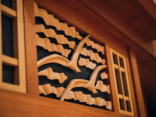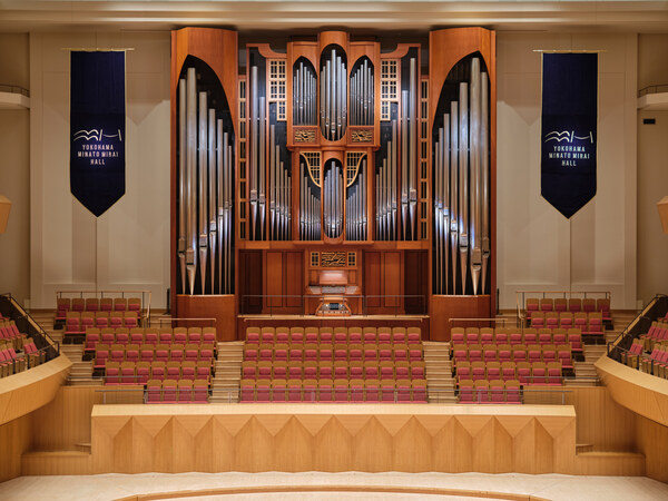 アメリカでつくられ船で運ばれてきたオーダーメイドの楽器で、日本らしい神社の鳥居や格子、横浜にちなんだカモメ等が装飾でされています。実はパイプ全体にも翼を広げたカモメが隠れています。ホールにご来場の際は、ぜひ探してみてくださいね。