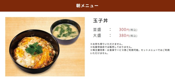 今回の「得朝親子丼」は一部店舗限定ではありますが、松のや全体として朝メニューは充実しています。
