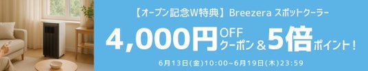 【オープン記念W特典】CHOUHOU楽天市場店、新規オープン!「Breezera」スポットクーラーが特別価格に|限定クーポン+ポイント5倍のWキャンペーン実施中