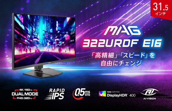 エムエスアイコンピュータージャパンは6月13日、新しいゲーミングモニター「MAG 322URDF E16」を発売すると発表した。