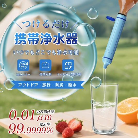 アウトドア、キャンプ、登山、釣り、などにも役立つ携帯用浄水器です。<br><br>注:28mmねじ込み構造に対応し、日本国内のほとんどのペットボトルに使用することができます。