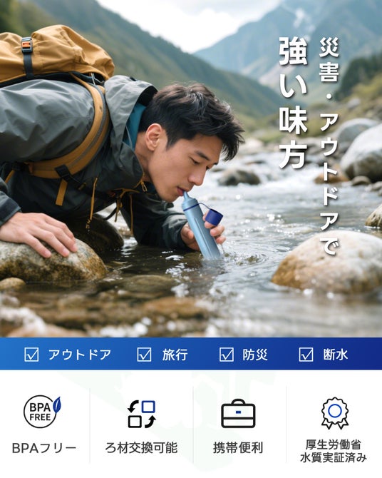 【新品登場】水の不安をゼロに★Greeshow \GS-28H1携帯浄水器/ タイムセールを開催中!ストロー型 BPAフリー 災害時やアウトドアでの飲料水確保に