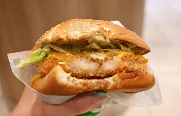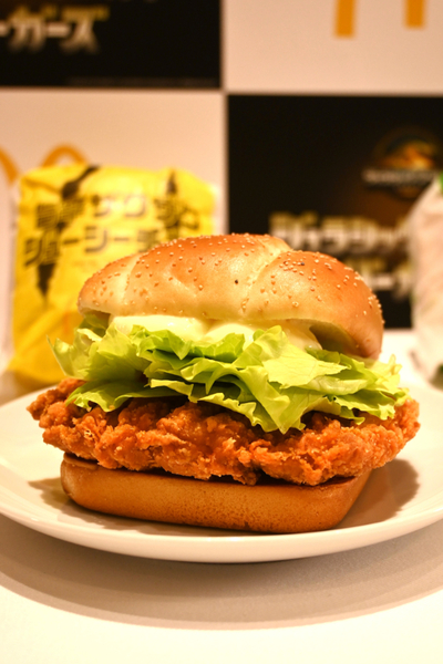事前に開かれた発表会で実物がお目見え。真っ先に「アレ?」と気になったのは、バンズ(具材を挟むパン)の形。いつものまるいバンズと違って、なんだか四角っぽいです。