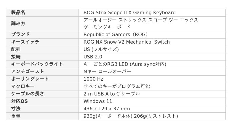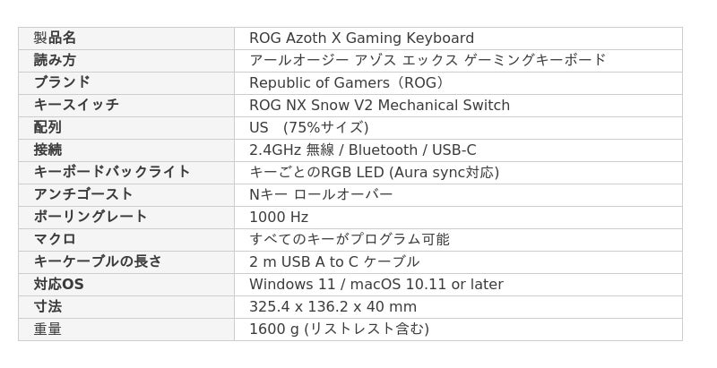 ROG NX Snow V2 メカニカルスイッチ採用: