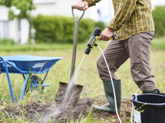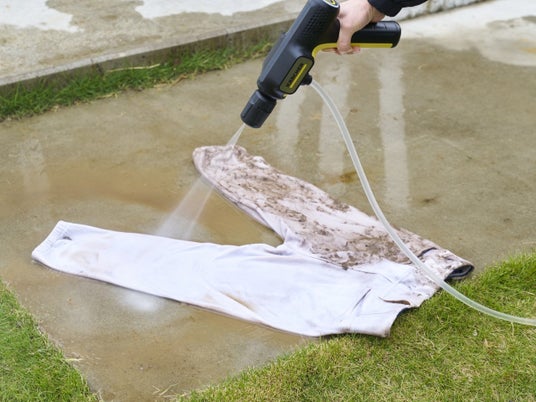 コンパクトでありながら、最大許容圧力1.5MPaのパワフルな洗浄力。一般的な水道と比較して約7.5倍の圧力です(*1)。頑固な泥や砂汚れも高圧洗浄で簡単に洗い落とすことができ、小さくても確かなケルヒャー品質を実現しています。衣類に入り込んだ泥汚れもこすらずに高圧の水流で洗い落とすことができるため、洗濯前の予洗いにも活躍します。