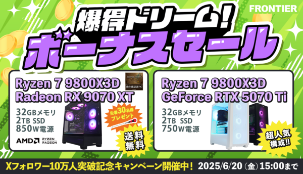 FRONTIER爆得セール!最新Ryzen搭載PCが送料無料の特別価格
