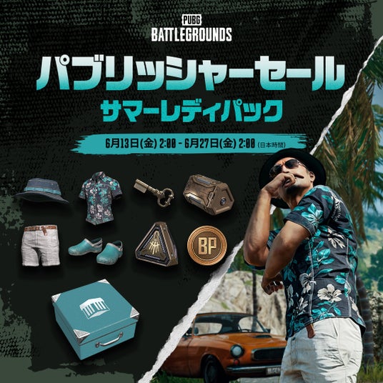 夏コンセプトの衣装アイテム4種とサプライルートキャッシュ(x10)、ハンターチェスト(x3)、5,000 BPをセットにした「サマーレディパック」が無料で提供されます。