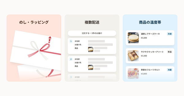 また、食品業界に特化した機能として、ギフト対応が求められるシーンでののし・ラッピング機能やお中元・お歳暮などのギフトシーズンにも対応して1回の注文で複数の配送先を指定できる複数配送機能、常温・冷蔵・冷凍の配送区分を商品ごとに設定できる三温度帯設定機能も備えるという。