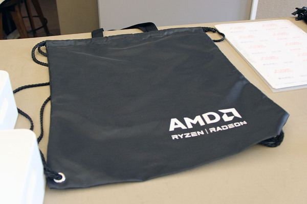 来場特典として、Xで展示製品写真をポストするとAMDロゴ入りオリジナルナップサックがもらえた