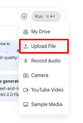 アップロードが完了したらプロンプトを入力して「Run」をクリック。