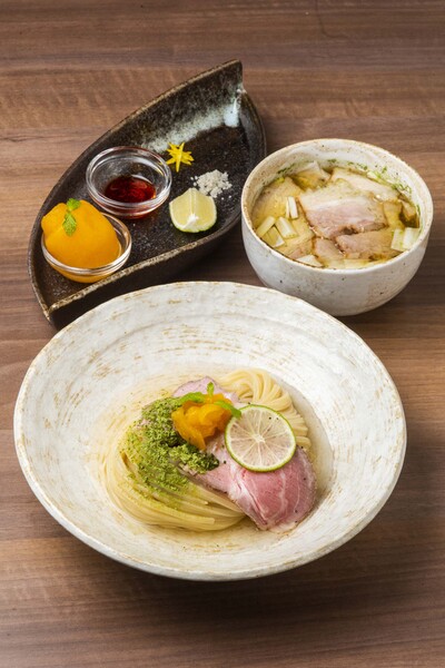 1日10杯限定!今が旬のビワの実と葉を使った創作つけ麺「皇室献上びわ農家直送!〜果実の甘味と茶葉香る〜房州びわつけ麺」