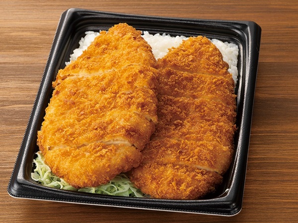 従来品「チキンカツ弁当」と比較して、チキンカツを約50%増やした。お店で炊いたご飯の上に、食べ応えのあるチキンカツをのせた。