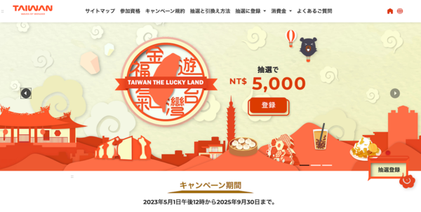 まず以前もレポートしていますが(連載記事「台湾行ったら5000元(約2万3000円)が当たっちゃった!?」)、現在、台湾観光庁が旅行客向けに抽選で5000TWD(台湾ドル/台湾元)が当たるキャンペーンを実施しています。取材時の1TWD(台湾元)は5円程度ですので、約2万5000円がもらえる計算になります。