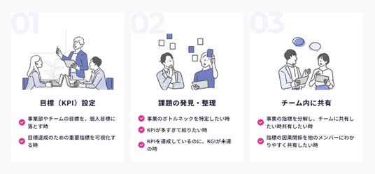 多くの企業では「どの数値を追うべきかわからない」「感覚的な議論に終始してしまう」といった課題を抱えています。「KPI Master」は、事業目標から逆算して追うべき数値をロジックツリーで可視化します。これにより、感覚ではなく数字に基づいた議論が生まれ、チーム全員が同じ目標に向かって進むことを可能にします。この機会にぜひご活用ください。