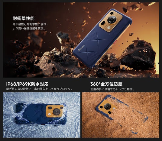 さらに本製品は、一般的なスマートフォンと異なり、食品グレードの液状シリコン素材を外装に採用することで、手触りの良さと衝撃吸収性を両立。IP68/IP69K準拠の防水・防塵・耐衝撃設計、大容量7150mAhバッテリーによる最大12日間の超長待機も実現しています。