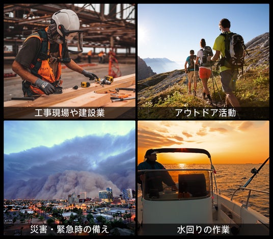キャンプ・登山・ツーリングなどのアウトドアシーンはもちろん、マリンスポーツ、運送業、建築現場での連絡や管理にも大活躍!
