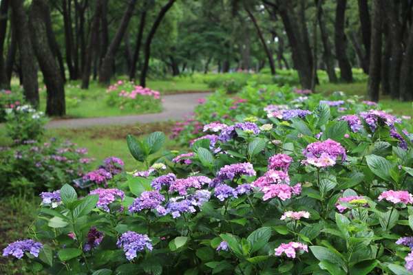 国営海の中道海浜公園、鮮やかなアジサイが見頃を迎える