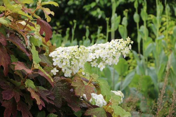 「あじさいの小径(こみち)」では、クロマツ林の林床で咲くアジサイの静かな美しさを堪能できる。一方、「フラワーミュージアム」では、円錐形のカシワバアジサイや純白のアナベルなど、様々なアジサイが華やかに咲き誇る。
