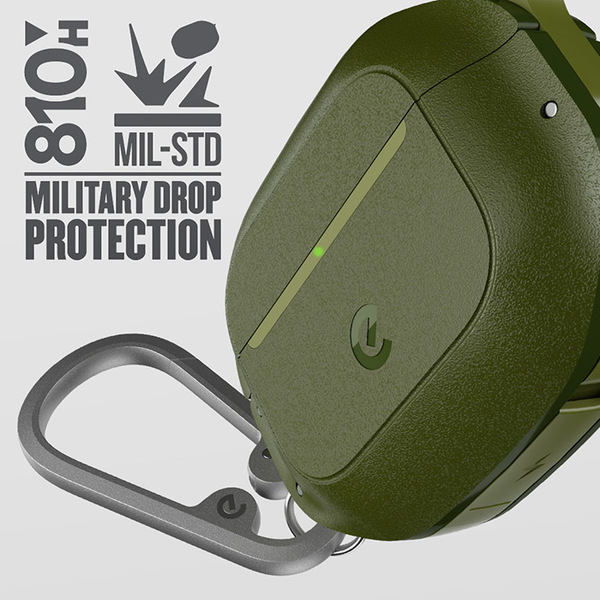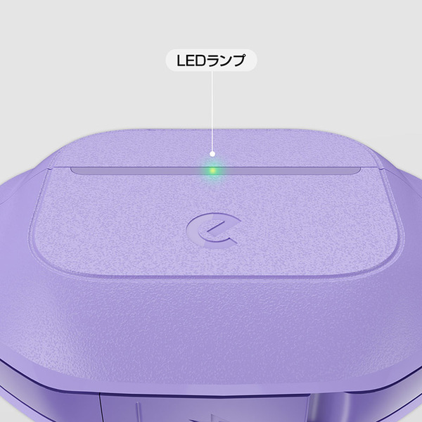 セキュアロック機構でケースが不意に開くのを防止し、イヤホンの飛び出しを防ぎます。また、ケースを装着したままでもLEDランプの光が透過し、AirPodsのステータスを確認可能。LightningやUSB-Cポートからの有線充電、およびQiワイヤレス充電器での充電にも対応しています。