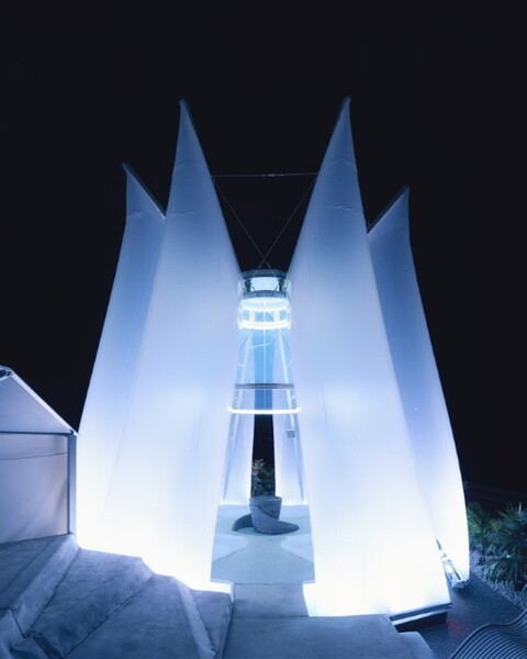 太陽のつぼみは、1970年・大阪万博のアメリカ館の膜構造体で知られる太陽工業の協賛プロジェクトだ。斬新な膜建築で造形された施設はまさに花の「つぼみ」のような外観で、「サウナリチュアル」という新しい実験的なサウナをこの施設で提唱している。