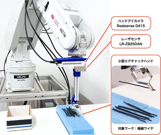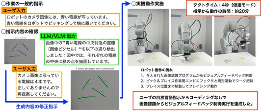 ユーザーは、たとえば「青い電線をピッキングして横に置いてください」といった日本語による作業指示を与えます。