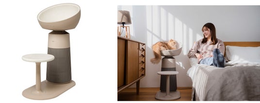 LGの空気清浄機シリーズ「LG PuriCare(TM)」の新モデルとなる本製品は、2025年3月26日(水)から5月18日(日)までクラウドファンディングサイト「GREEN FUNDING」にて支援を募集し、総額26,227,000円、363人にご支援いただいた、空気清浄と猫の健康管理、さらにはキャットタワーを組み合わせた新発想家電です。ペット由来のニオイやアレル物質などを強力に除去する優れた空気清浄機能だけではなく、本体上部に搭載した温熱シートは猫の体重を測定・記録する健康管理機能を備えており、猫と暮らすオーナーに最適な1台です。
