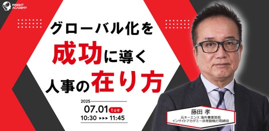 グローバル人材育成・研修業を手掛けるインサイトアカデミー株式会社(本社:東京都港区新橋、代表:金 珍燮)は、無料webセミナー「グローバル化を成功に導く人事の在り方」を2025年7月1日(火)10:30より開催します。