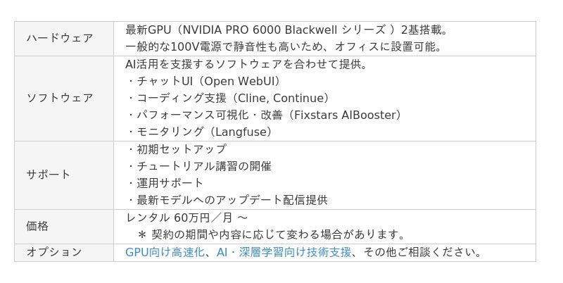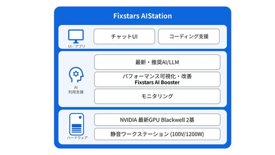 パフォーマンスエンジニアリング技術のリーディングカンパニーである株式会社フィックスターズ(東証プライム:3687、代表取締役社長 CEO:三木 聡)は、最新AIをローカル環境でセキュアに使えるプライベートAI活用ワークステーション「Fixstars AIStation(エーアイ・ステーション)」(以下、AIStation)のレンタル提供を開始しました。