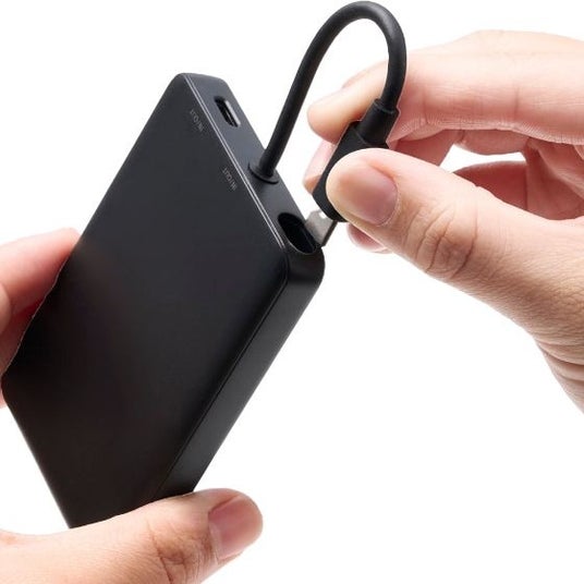 - 本体にケーブルが付属した、ケーブル一体型のモバイルバッテリーです。