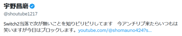 【本日】任天堂「Switch 2」5回目の当落発表 宇野昌磨さん「当選を確信」ゲーム