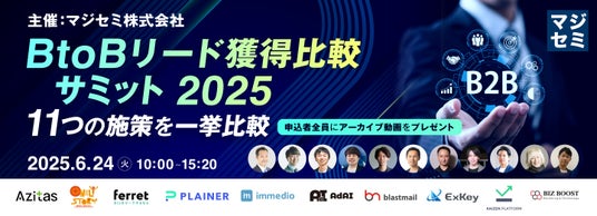 マジセミ株式会社は「BtoBリード獲得比較サミット2025 ~ 11つの施策を一挙比較 ~」というテーマのウェビナーを開催します。