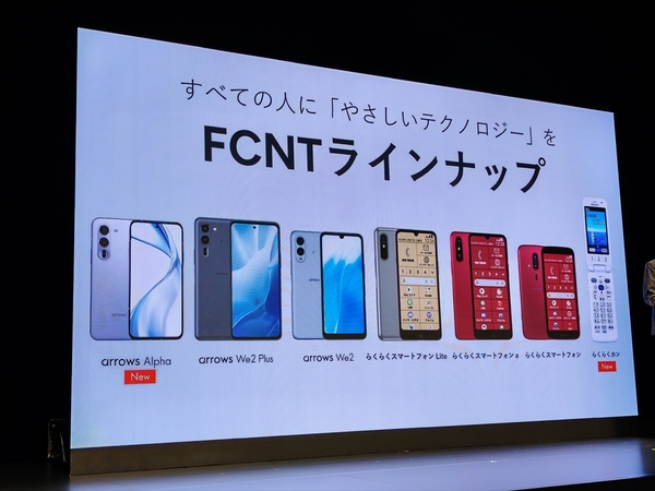 FCNTは17日、新製品発表会を開催し、arrowsシリーズの新モデル「arrows Alpha」と6年ぶりのフィーチャーフォン「らくらくホン」をお披露目しました。どちらも8月以降発売と、少し先の登場になります。