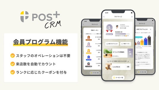 ポスタス株式会社(本社:東京都中央区、代表取締役社長:本田 興一、以下:ポスタス)は、飲食店向けPOSレジ「POS+ food(ポスタス フード)」のオプションサービス「POS+ CRM(ポスタス シーアールエム)」で会員プログラム機能の提供を本日開始したことをお知らせします。