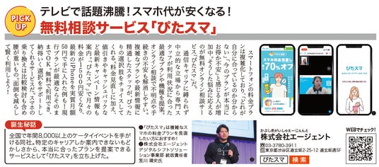 株式会社エージェント(本社:東京都渋谷区、代表取締役:四宮浩二、証券コード:7098)が提供するスマホ料金見直し無料相談サービス『ぴたスマ』が、話題の消費情報誌『日経トレンディ』2025年7月号にタイアップ形式のPR記事が掲載されています。